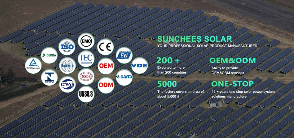 Sunchees integrates regional resource advantagesintroduced advanced production equipment specialized production line through international standard management and strict quality control to ensure the stable-performance and high-quality of the products. Sunchees can offer OEM/ODM services as per customers’ specific requirements customize the solar power system in the practical application.