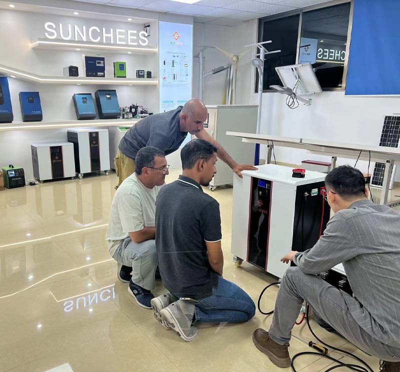 In October 2023, the client said they would come to visit the factory. Due to his tight schedule, the client arrived at the factory at 8 pm. Our team discussed many details and project design with the client. The client also saw the sample solar power system at the factory, so they were very satisfied. On site, he paid in cash