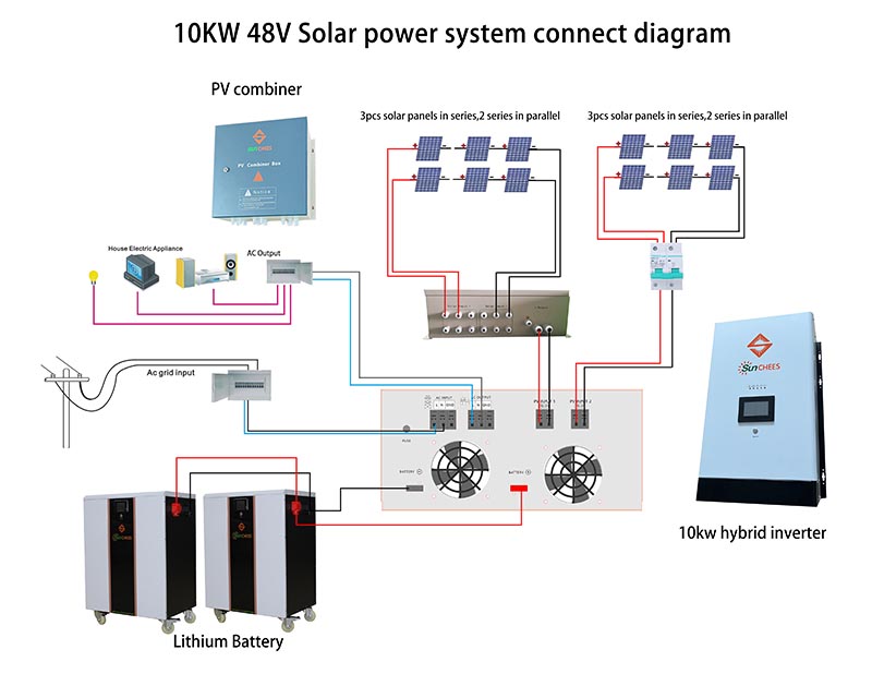 Solar energy storage system with : solar panel + pv combiner + MPPT solar inverter with controller + lithium battery combinations a system