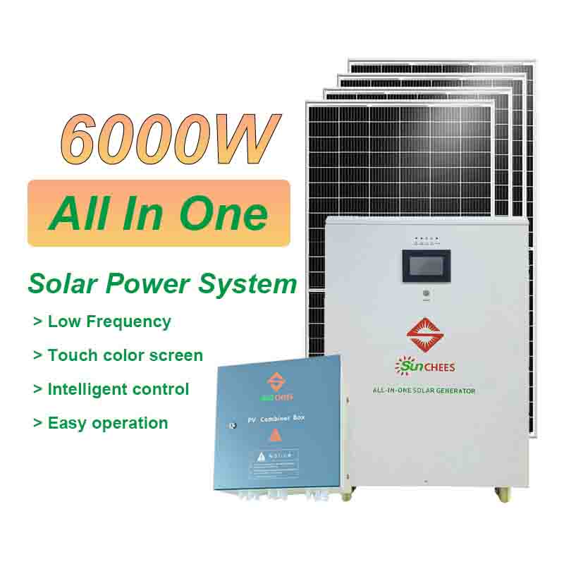 Sunchees 6kW Off-Grid Solar Energy System | All-in-One PV Kit | Solar Inverter | MPPT Controller | Battery Storage | Solar Plant Solution for Home